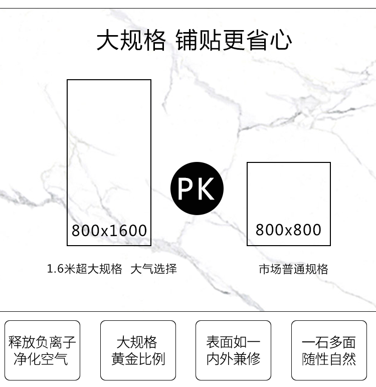 大規格瓷磚(MG816YD020F)-工程瓷磚 金曼古大規格瓷磚引進世界最先進的超大型壓機自動壓制而成,具有超大規格,超高硬度,超高致密度,超長時間煅燒,超低吸水率,超高光澤度。其磚面紋理流暢自然,效果逼真,適用于大型工程外墻干掛和酒店、商場、各辦公樓大堂等地面裝修