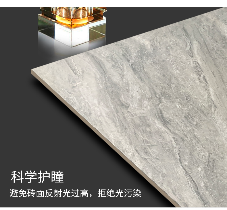 柔光瓷磚是磚面反射介于強光與弱光之間的一類瓷磚,其結(jié)合亮光類瓷磚的高調(diào)明艷裝飾和啞光類瓷磚的低調(diào)內(nèi)斂搭配效果,通過動態(tài)柔光蠟拋技術(shù),降低產(chǎn)品反光率,從而達(dá)到人體舒適的視覺感受以及無光污染的空間裝飾效果。優(yōu)點:1.視覺舒適,無光污染 2.堅固耐磨,不易刮花.