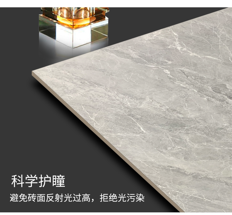 柔光瓷磚是磚面反射介于強(qiáng)光與弱光之間的一類瓷磚,其結(jié)合亮光類瓷磚的高調(diào)明艷裝飾和啞光類瓷磚的低調(diào)內(nèi)斂搭配效果,通過動(dòng)態(tài)柔光蠟拋技術(shù),降低產(chǎn)品反光率,從而達(dá)到人體舒適的視覺感受以及無光污染的空間裝飾效果。優(yōu)點(diǎn):1.視覺舒適,無光污染 2.堅(jiān)固耐磨,不易刮花.