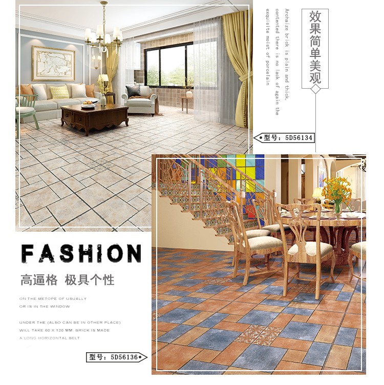 金曼古仿古地磚,采用國際先進(jìn)的超大型壓機自動成型,經(jīng)世界一流的滾筒印花和高溫煅燒而成,通過仿石、仿巖、仿木、仿布、仿金屬等多種表現(xiàn)方式,產(chǎn)品花色圖案新穎時尚,領(lǐng)先國際潮流,具有超耐磨、防滑、防污等高性能指標(biāo)。