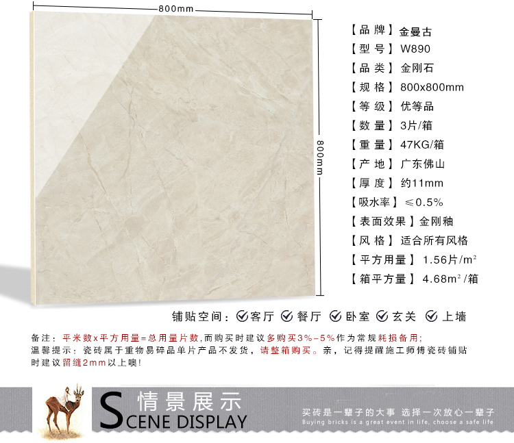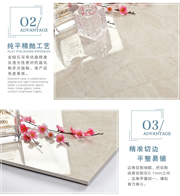 金曼古瓷磚廠家特價金剛石因高品質而得名,是一款極具天然石材效果和微晶石質感的仿石材瓷磚,它不但在價格、環保、耐用和清潔上極具優勢,在質感、規格、花色、重量等指標上,金剛石都遠遠勝于石材、拋光磚。相比其他種類的產品,它最大的特點可以用“高亮度、高耐磨、高平整、高逼真、高清晰、高環保”。