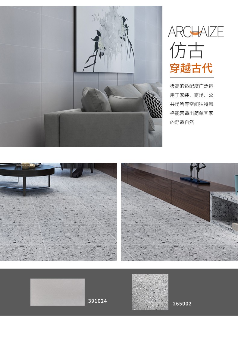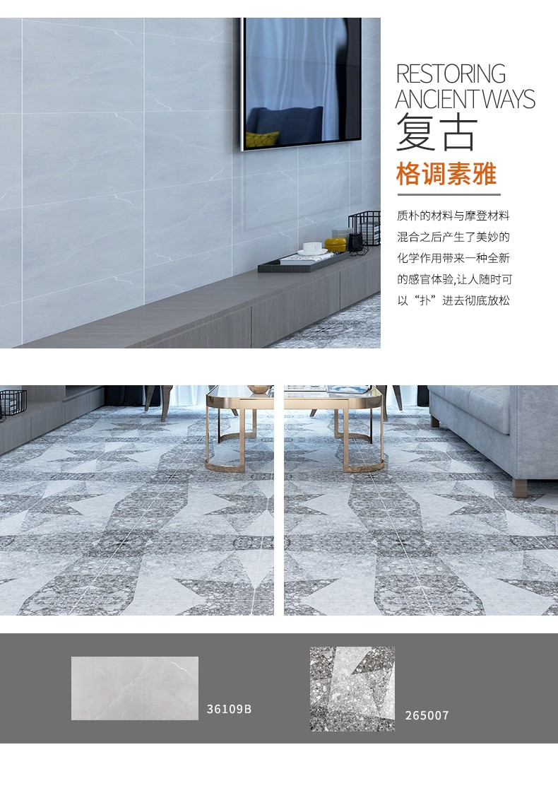 金曼古仿古地磚,采用國(guó)際先進(jìn)的超大型壓機(jī)自動(dòng)成型,經(jīng)世界一流的滾筒印花和高溫煅燒而成,通過仿石、仿巖、仿木、仿布、仿金屬等多種表現(xiàn)方式,產(chǎn)品花色圖案新穎時(shí)尚,領(lǐng)先國(guó)際潮流,具有超耐磨、防滑、防污等高性能指標(biāo)。