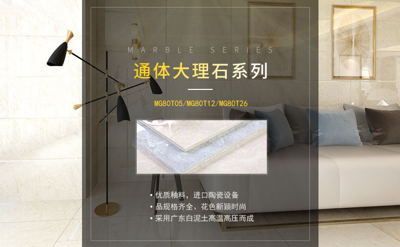 通體大理石瓷磚,即是大理石瓷磚的一種,亦是一種拋釉磚坯經過拋光工序之后形成的瓷磚,只不過通體大理石瓷磚更加注重對瓷磚磚坯的塑造,其原本原理也是在大理石瓷磚基礎上,加類似于瓷磚表面紋理的磚坯組合而成的瓷磚產品。另外,現階段各種傳統單純釉面的大理石瓷磚產品已經開始泛濫,而通體大理石瓷磚的出現無疑又是給已經乏力的大理石瓷磚市場注入新的活力.應用廣,市場大.
