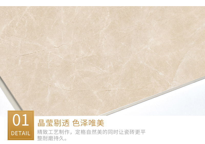 4、磚體薄、重量輕:如果采用天然石材會因強度低,加工厚度較大,笨重,增加了樓層建筑物的負荷重量,形成潛在威脅,成本上升,并且增加了運輸、鋪貼等困難。故金曼古瓷磚是你最佳選擇