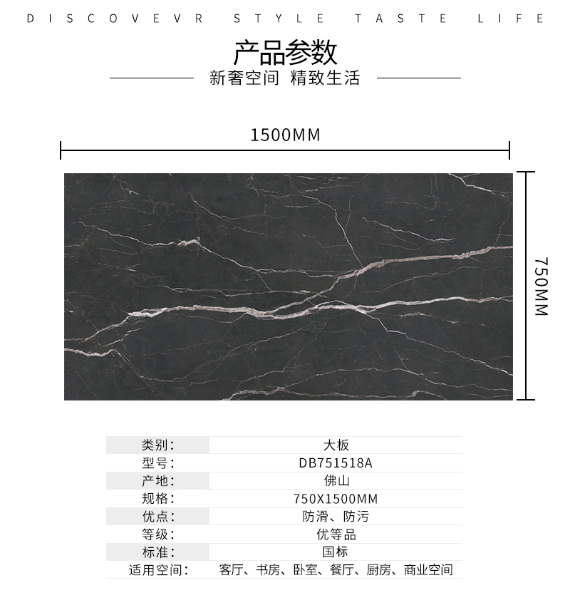 大規格瓷磚(DB751518A)-工程瓷磚 金曼古大規格瓷磚引進世界最先進的超大型壓機自動壓制而成,具有超大規格,超高硬度,超高致密度,超長時間煅燒,超低吸水率,超高光澤度。其磚面紋理流暢自然,效果逼真,適用于大型工程外墻干掛和酒店、商場、各辦公樓大堂等地面裝修