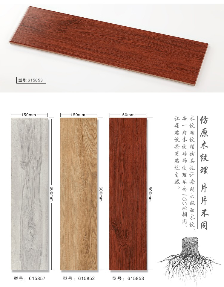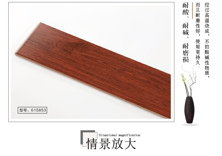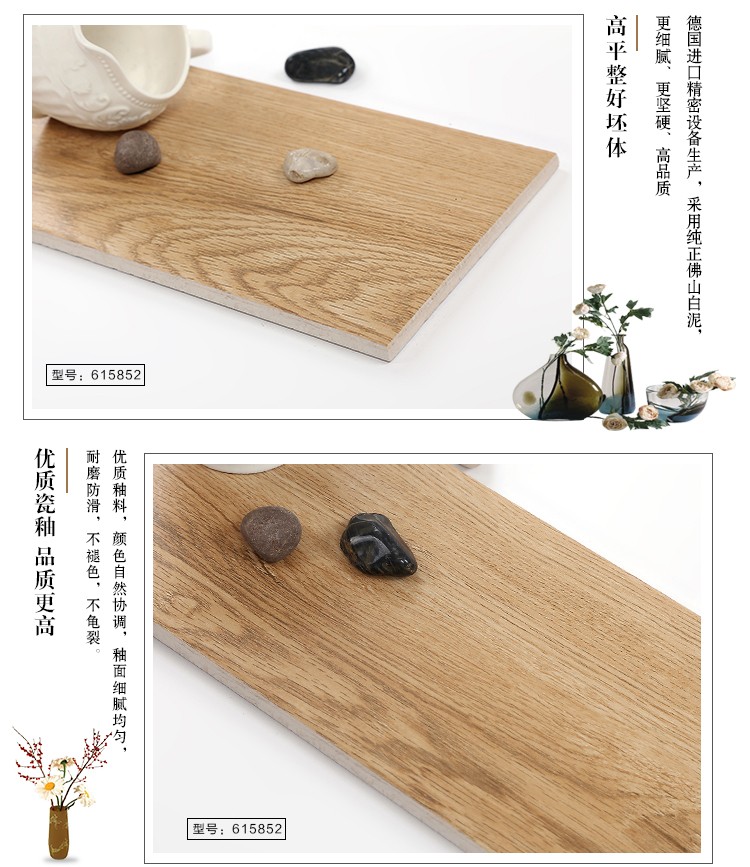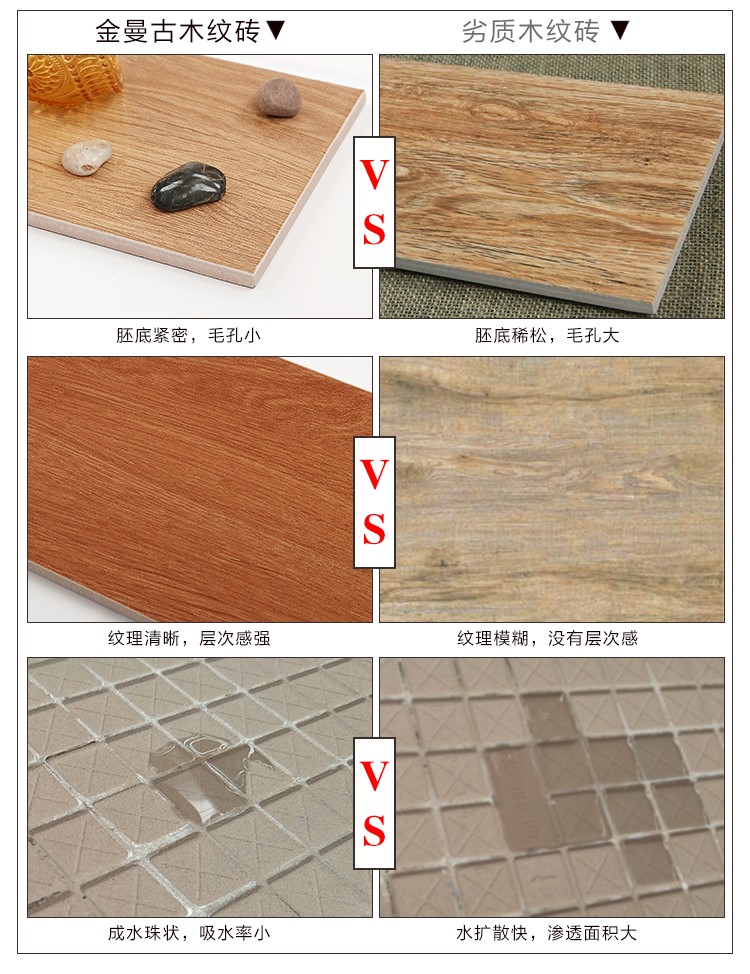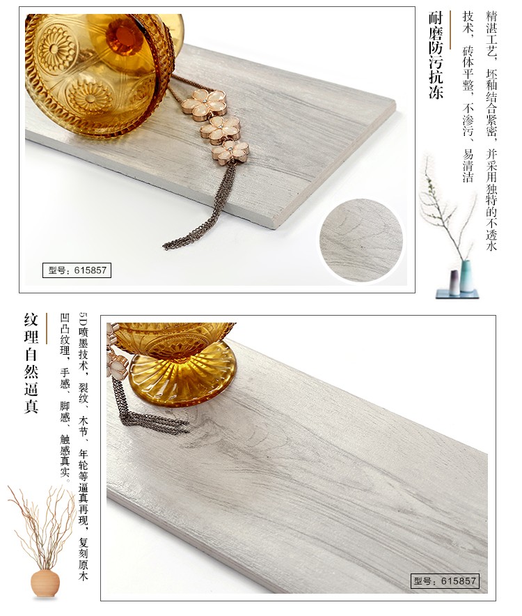 金曼古木紋磚,是一種表面呈現(xiàn)木紋裝飾圖案的環(huán)保建材.紋路逼真、自然樸實(shí)、沒有木地板褪色、不耐磨等缺點(diǎn);曼古陶瓷木紋磚系列線條明快,圖案清晰為特色。本身具有阻燃,不腐蝕的特點(diǎn),綠色、環(huán)保型建材;產(chǎn)品使用壽命長,耐磨,無需像木制產(chǎn)品那樣周期性地打蠟保養(yǎng)等.